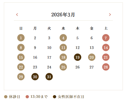 3月の休診日と女性医師不在日についてお知らせいたします。